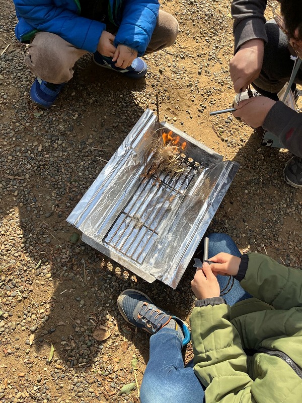 火おこし体験を通じて、火の扱い方やその魅力も学びます。
