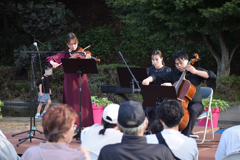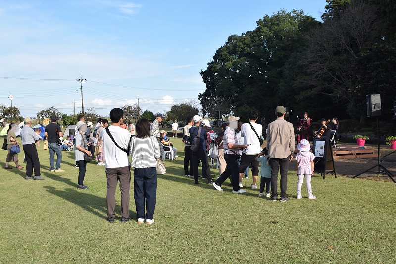さわやかな秋空のもと、トンボが飛び交う広場では、演奏が聞こえてくるとステージの周りには何重にも観客が集まり、音楽に耳をかたむけていらっしゃいました。