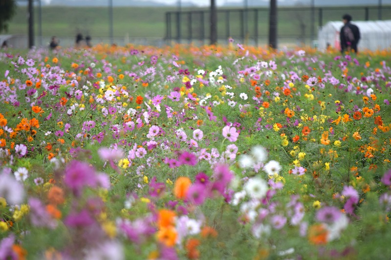 2025年10月26日 見ごろのお花 【コスモス開花状況】2025年10月26日 ※風車前花畑、果樹園、風車周辺はペット入園不可エリアです。※春のチューリップ植え付け準備のため、風車前花畑は11/4(火)に刈り取ります。※このような開花状況のため、恐れ入りますが今年は摘み取りは行えません。ご理解をいただきますようお願いいたします。 <風車前花畑> 少しずつではありますが、花数が増えてきています。中央駐車場A側の一部は間もなく見頃になりそうです。メタセコイア側は一番発芽数が多いエリアです。全体の1割くらい咲いています。中央駐車場A側 メタセコイア側 花畑全体