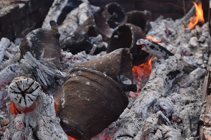 土器を火に入れてから1時間もせずに焼きあがりました。