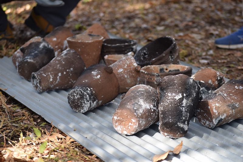 2回目は焼成。2週間乾燥させた後、園内の林で火を焚いて焼きました。