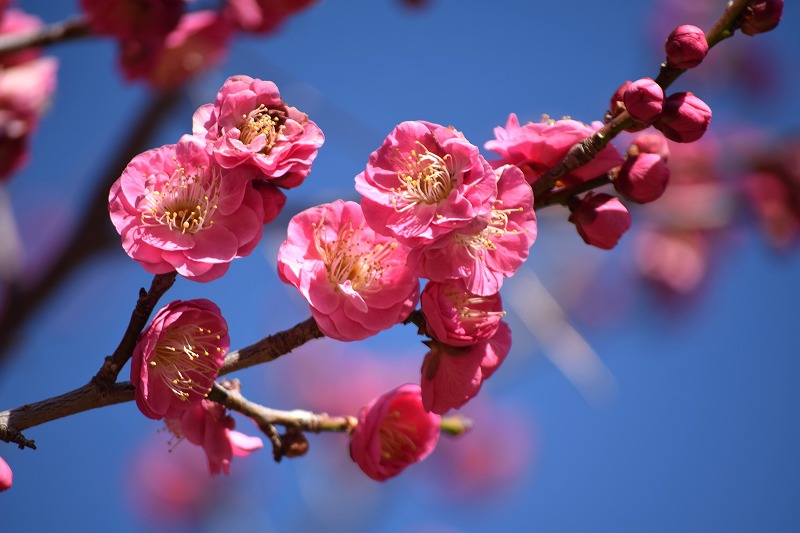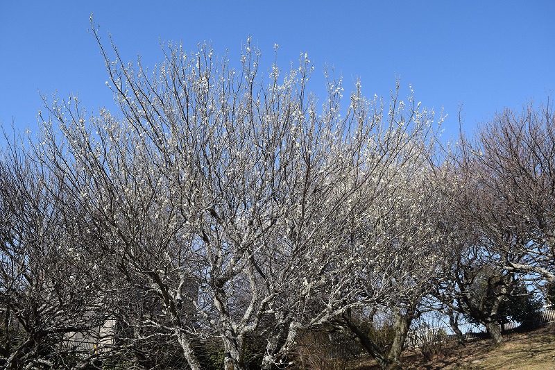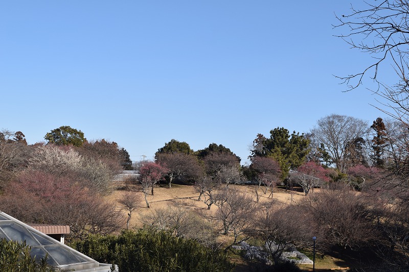 2026年01月31日 見ごろのお花 【ウメ開花状況】2026年1月31日 梅園全体としてはまだほとんどがつぼみの状態ですが、早咲きのものから少しずつ咲き始めました。全体 月の桂(つきのかつら) 寒衣(かんごろも)
