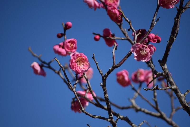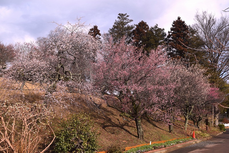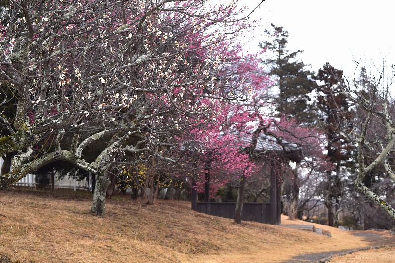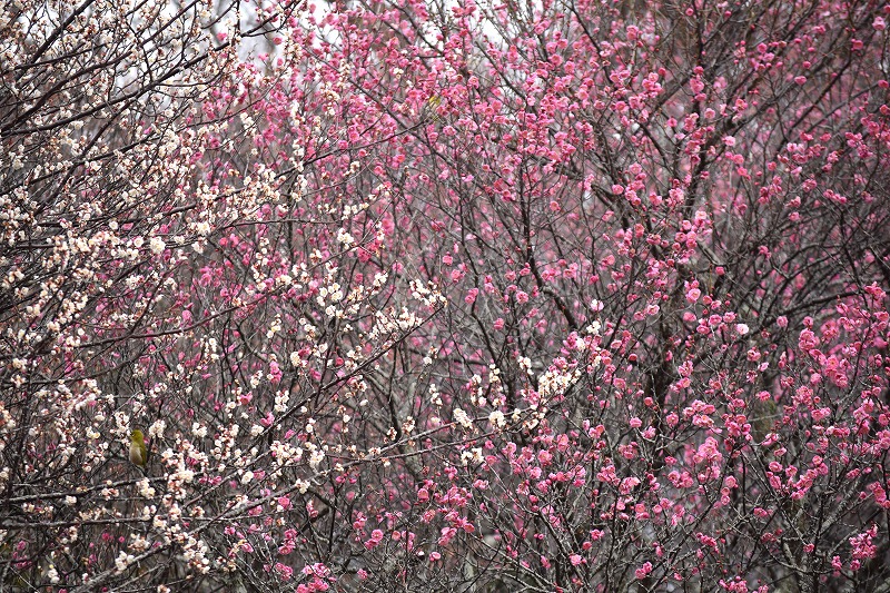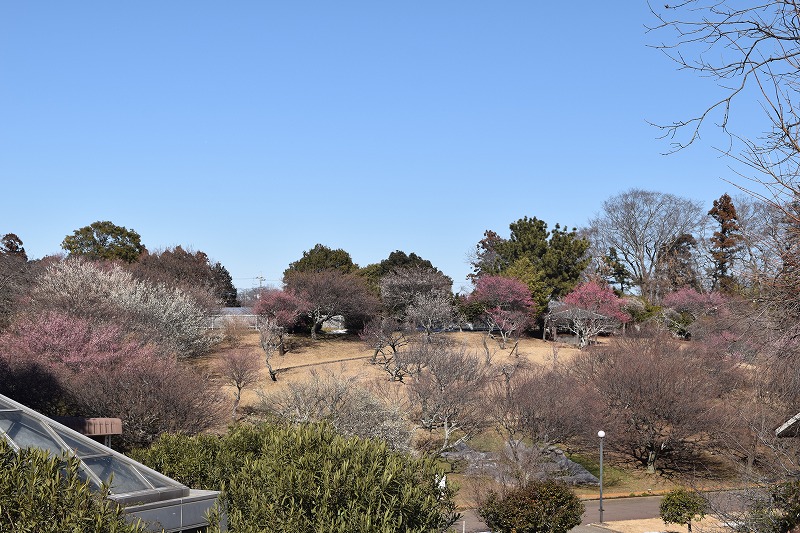 2026年02月12日 見ごろのお花 【ウメ開花状況】2026年2月12日 遅咲き品種以外は開花しております。品種ごとに開花時期が異なるため、梅園全体としては4割くらいの開花状況です。 資料館(1階売店)付近は見頃のウメが多いです。 鴛鴦(えんおう) 藤牡丹枝垂(ふじぼたんしだれ) 梅園案内図はこちら