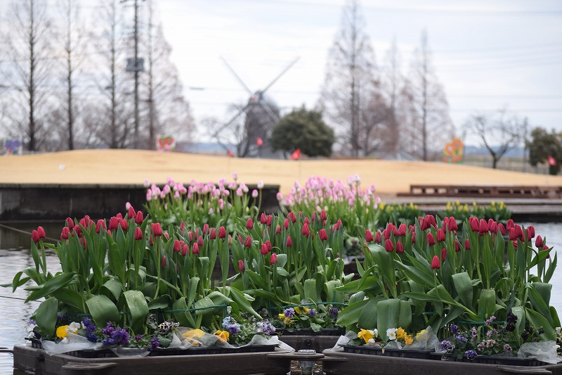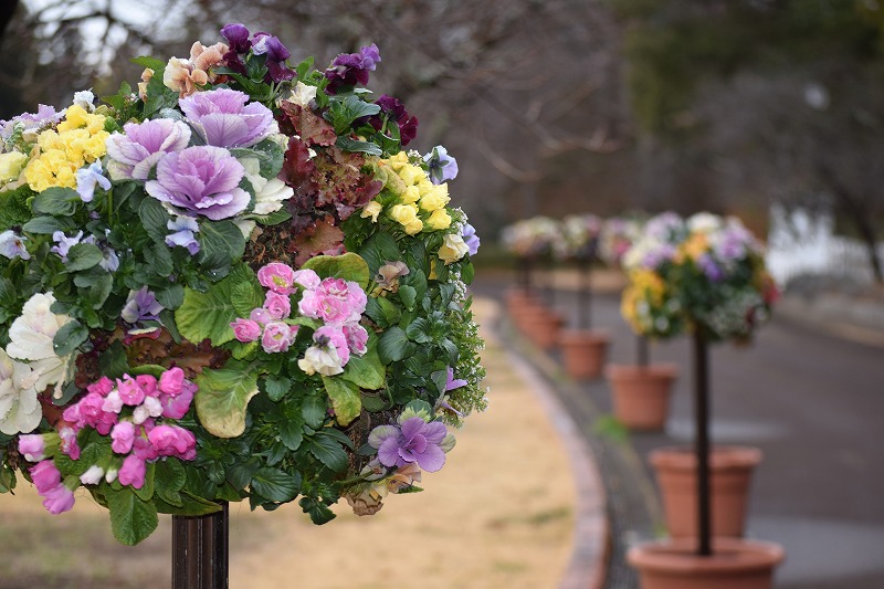 2026年02月12日 見ごろのお花 【現在見頃の花】2026年2月12日 <アイスチューリップ>プラザ広場のアイスチューリップは見頃終わりとなり、これからはひょうたん池(ふるさと広場内)の花いかだが見頃になります。 <園路ハンギングバスケット> <ソシンロウバイ>裏門付近園路 旧バーベキュー場前の庭 <ギンヨウアカシア(ミモザ)>本館前花壇、プラザ広場中央つぼみが生育中。開花が楽しみです♪
