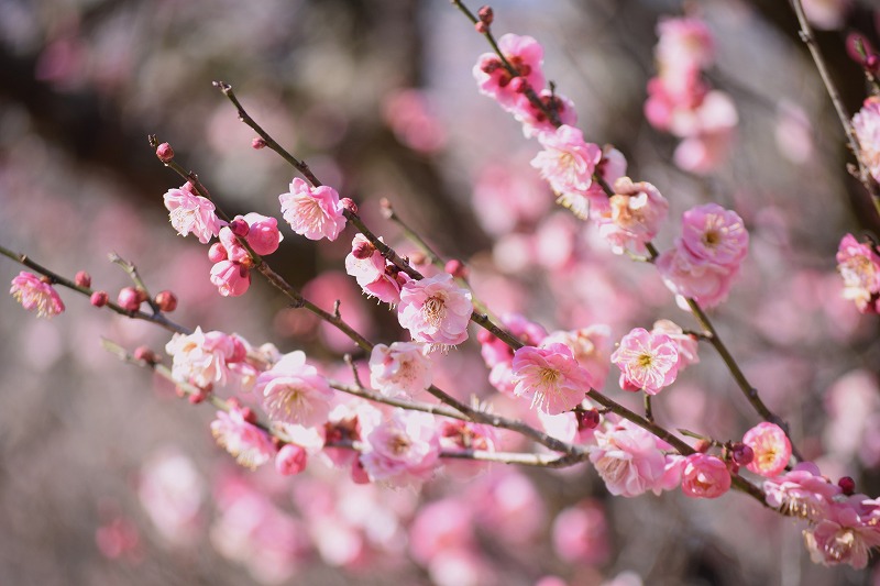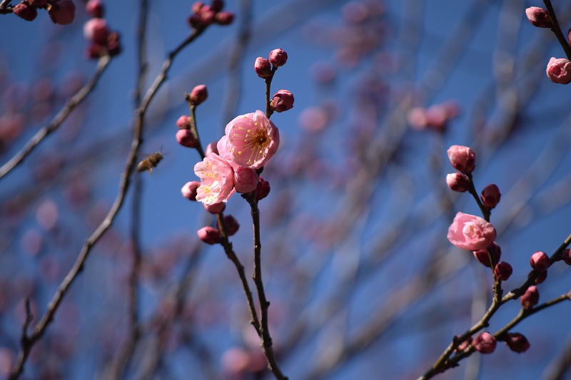 2026年02月14日 見ごろのお花 【ウメ開花状況】2026年2月14日 今日は春を思わせるように暖かい園内です。ウメの開花も進み、全体の5~6割ほど開花しています。 梅園内にはスイセンも咲いています。 遅咲き品種はまだつぼみです。 日本庭園でも梅をご覧いただけます。 梅の女王と言われる「見驚けんきょう」がぽつぽつ咲き始めました。 梅園案内図はこちら