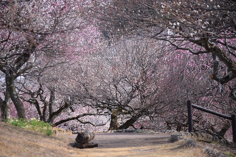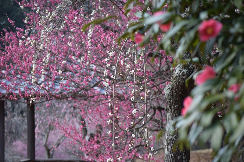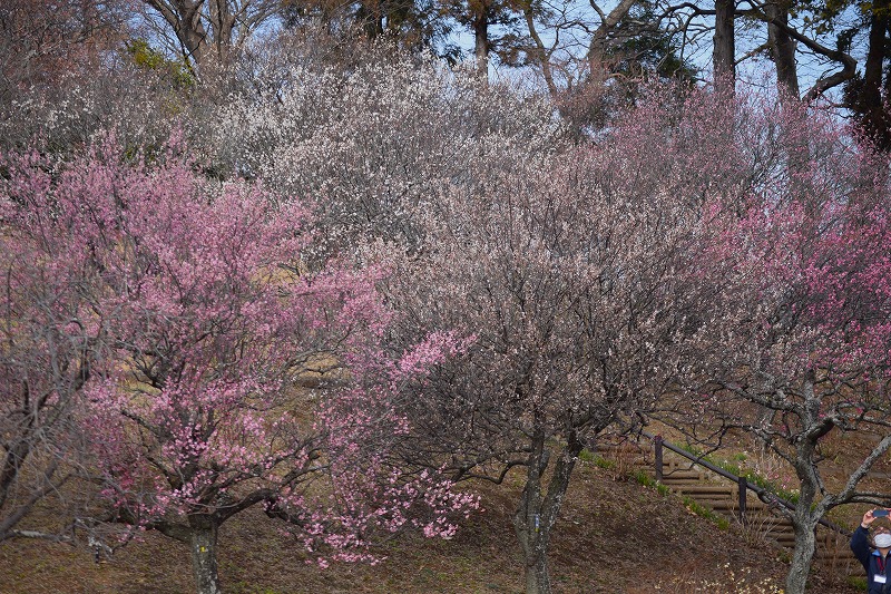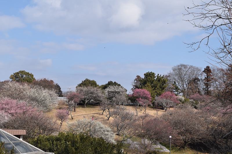 2026年02月18日 見ごろのお花 【ウメ開花状況】2026年2月18日 梅園のウメは見頃になりました。梅園全体としても8割ほど開花しています。遅咲きの品種もつぼみがふくらんできました。白、濃いピンク、薄いピンクが幾重にも重なり、ふんわりと優しい色合いに包まれています。