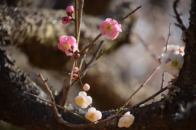 一本の木でピンク色と白色の花が咲くことで有名です。