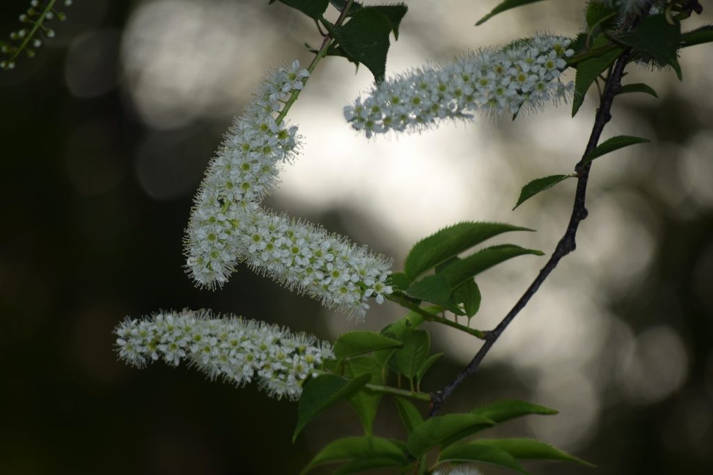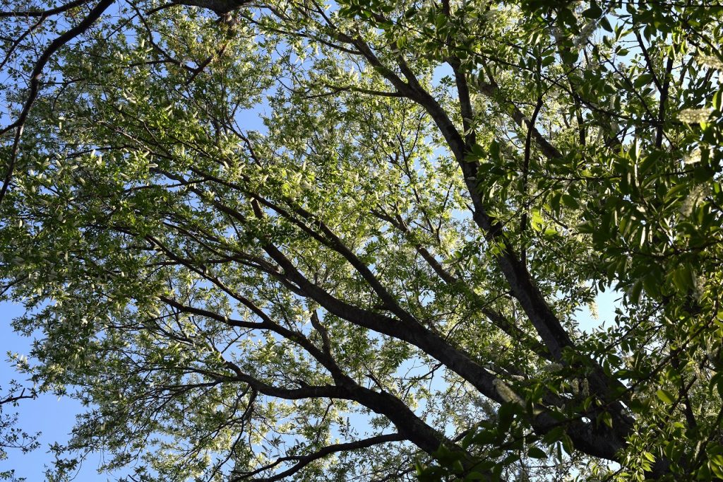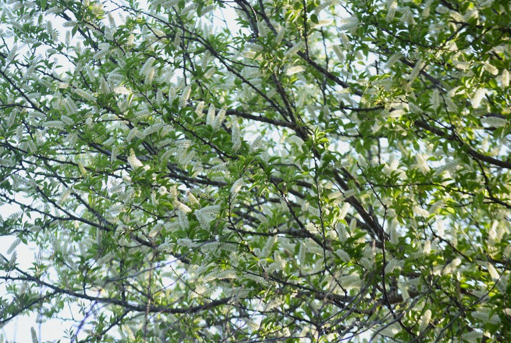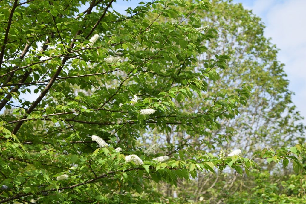2026年04月14日 見ごろのお花 【ウワミズザクラ】2026年4月14日 ウワミズザクラが咲いています。サクラと同じバラ科ですが、花は似ていませんね。小さな白い花が房状にたくさん集まっています。さくら山とあけぼの山農業公園エリアでご覧いただけます。 <ウワミズザクラ>(さくら山のアーコレードが咲くエリアの水生植物園に下りる階段付近) 見上げるほどの大きな木です。 木の根元にドウダンツツジがあるのが目印です。 花数は少ないですが、あけぼの山農業公園エリアにもあります。<ウワミズザクラ>(温室裏手の坂道の登り口右手)
