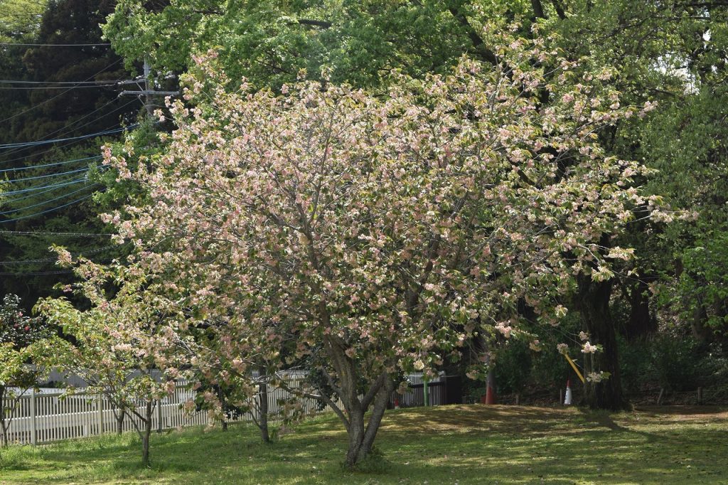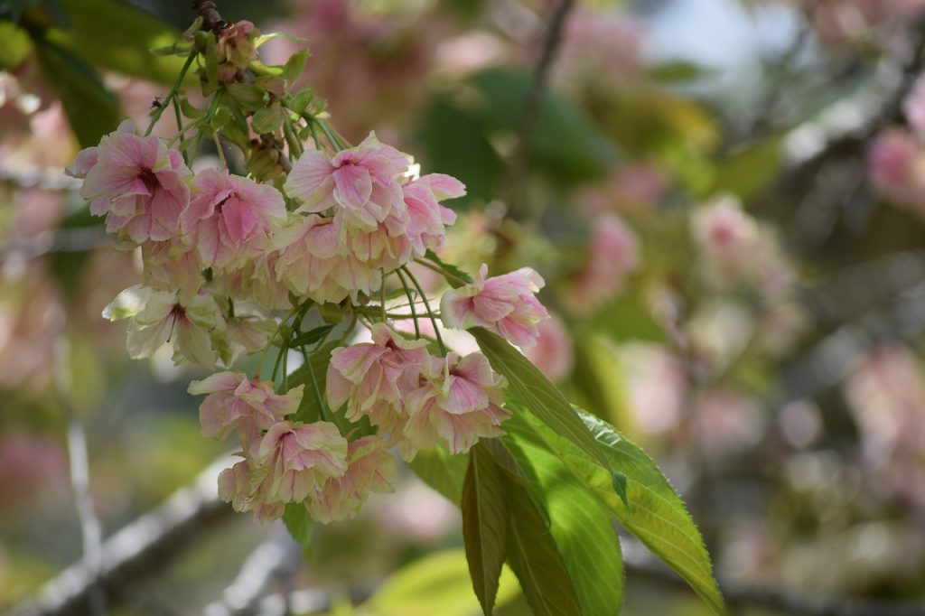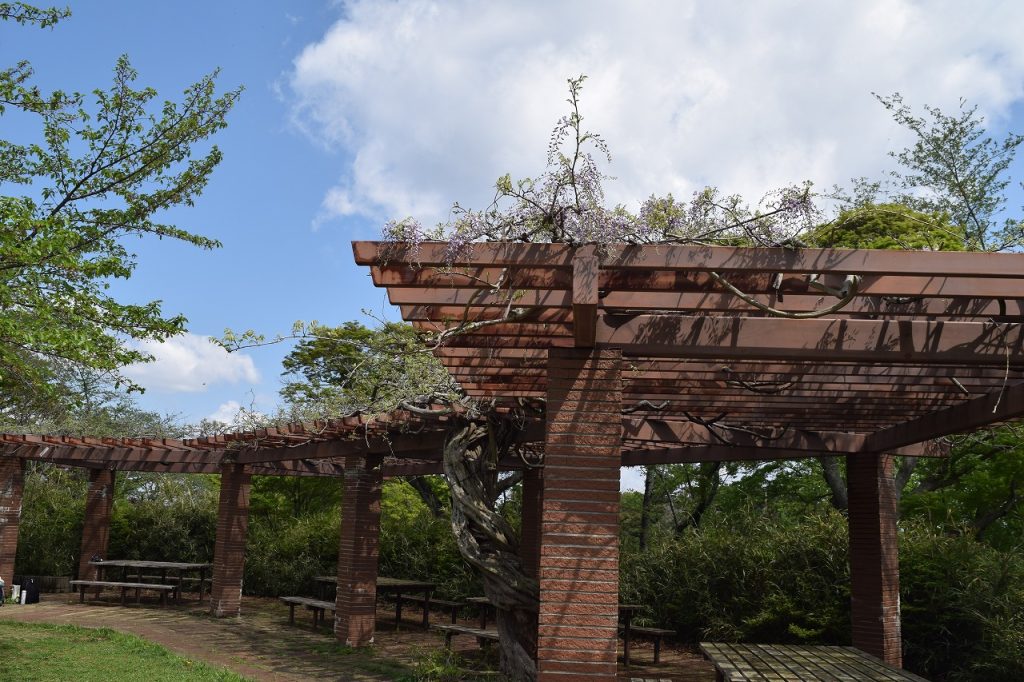 2026年04月16日 見ごろのお花 【見頃の花】2026年4月16日 フジが咲き始めました。(プラザ広場) (さくら山門) (さくら山) 3月に植えたものが咲き始めたところです。<ボタン>(日本庭園 布施弁天前駐車場入り口) 以前より植えられていたものは、見頃になっています。<ボタン>(日本庭園奥の池の前) まだつぼみが残っていますので、この後もお花をご覧いただけます。 <サクラ 御衣黄>(ふるさと広場 ひょうたん池の風車前花畑側)花全体に赤みが差してきました。 ハンカチノキが咲き始めました。(温室裏手の坂道) 八重桜’関山’ ’普賢象’(果樹園)